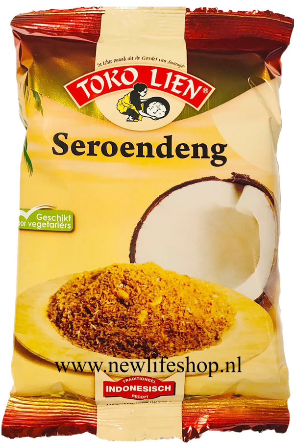 Seroendeng normaal from Toko Lien is a versatile blend of roasted coconut, salt, and spices, adding a delicious and neutral flavor to your dishes. This traditional Indonesian coconut mix is perfect for sprinkling over your dishes just before serving or as a flavorful garnish on the side. Enjoy the authentic taste of seroendeng without any preservatives!