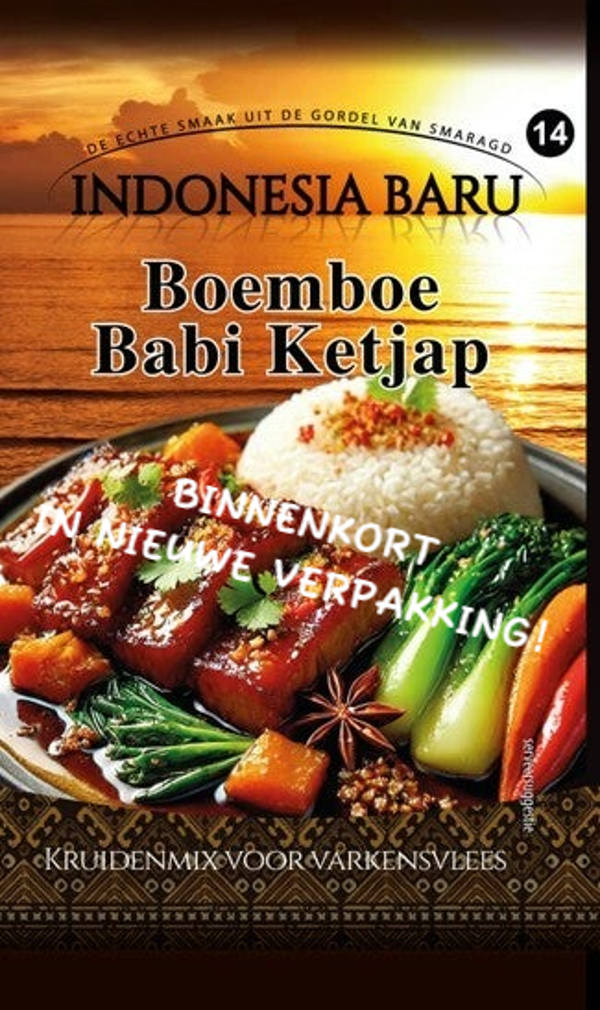 Discover the lush flavors of Indonesian cuisine with our Indonesia Baru spice mix / special boemboe Babi Ketjap of 100 grams. This mild spice mix is perfect for preparing Babi Ketjap, a delicious dish with pork or chicken based on ketjap. With our high-quality spice mix, you can effortlessly prepare an authentic Babi Ketjap, packed with flavors and aromas that are characteristic of Indonesian cuisine. Our carefully selected ingredients ensure a perfect balance of spices, making every bite a true delight. Order our Indonesia Baru spice mix / special boemboe Babi Ketjap of 100 grams today and let the exotic flavors of Indonesia enchant your kitchen. With our spice mix, preparing this delicious dish will be a simple and satisfying culinary adventure.