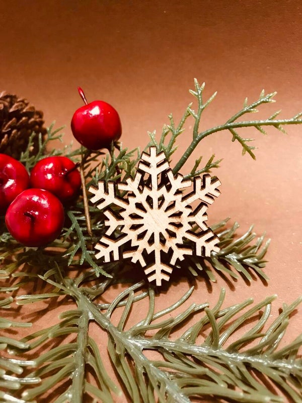 Houten sneeuwvlok in mooi motief. Deze sneeuwvlok van hout is te verkrijgen in de volgende maten: