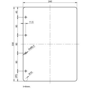 De afmetingen zijn: 33x24x0,4 cm. De gaten hebben een doorsnede van 6,5 mm.